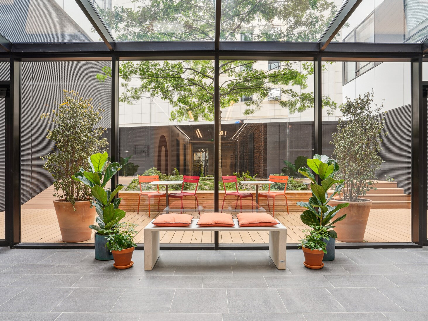 - création de nouveaux espaces de services, intégrant des salles de réunion mutualisées et un espace de coworking avec offre de snack et boissons,