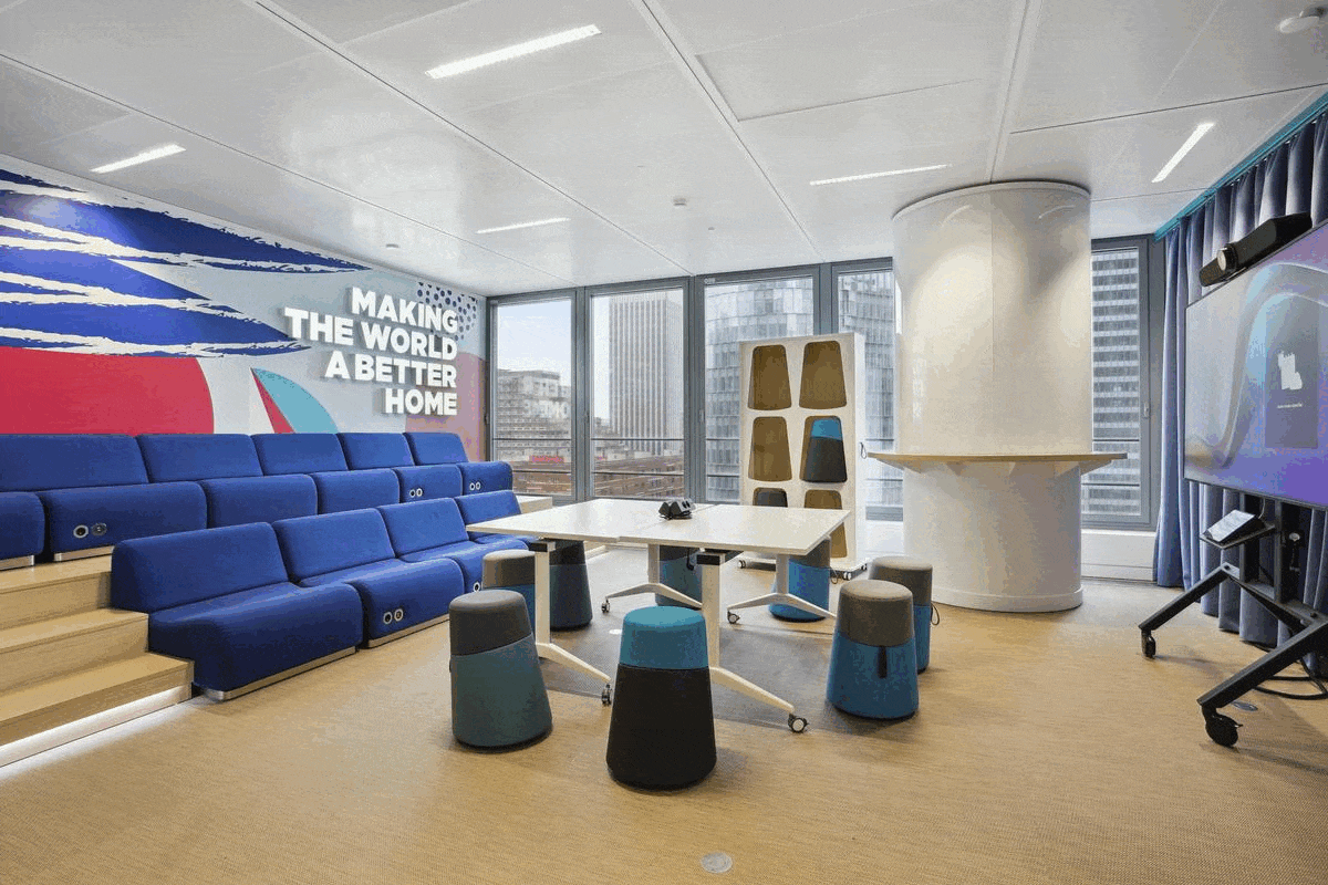 El objetivo de la misión era diseñar una plataforma que se correspondiera con las nuevas formas de trabajo de los equipos del grupo: más ágil, reconfigurable y adaptada a los usos del mañana, al tiempo que se reducía la oferta de los espacios de las salas de reuniones para satisfacer las necesidades cambiantes.