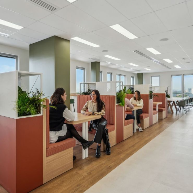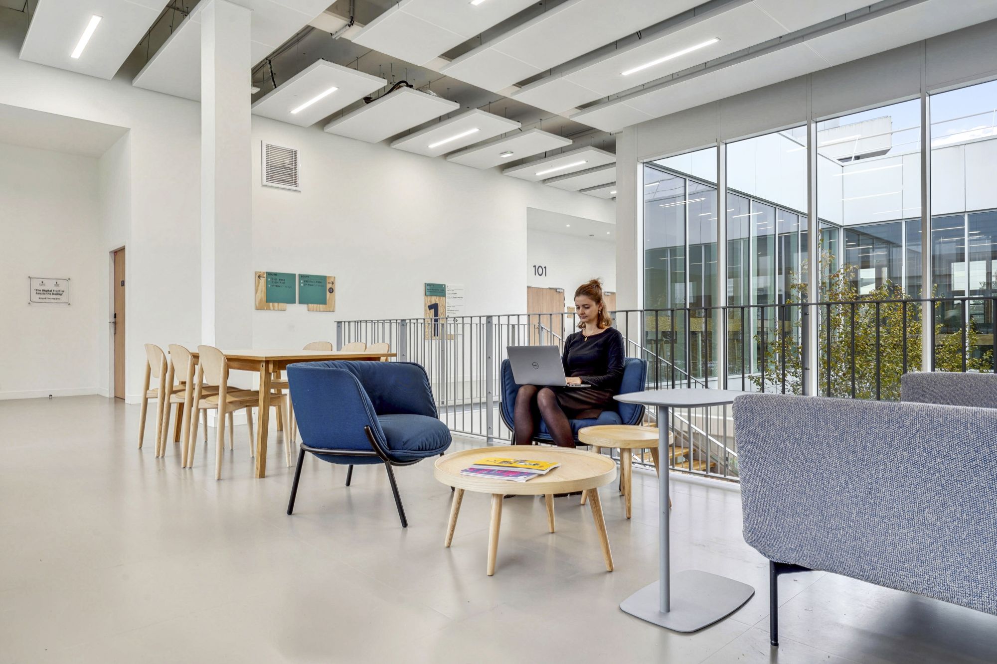 Les espaces du Pierre Nanterme Center permettent de s’adapter aux différents rythmes des utilisateurs. Le campus offre ainsi un équilibre, proposant tour à tour des espaces bouillonnant d’activité et d’autres, plus calmes qui invitent à prendre se détendre, se ressourcer, s’évader (jusqu’à la salle de sieste de l’incubateur). Les positions de travail face aux larges fenêtres invitent à la contemplation, apportant une vision d’ensemble propice à l’inspiration.