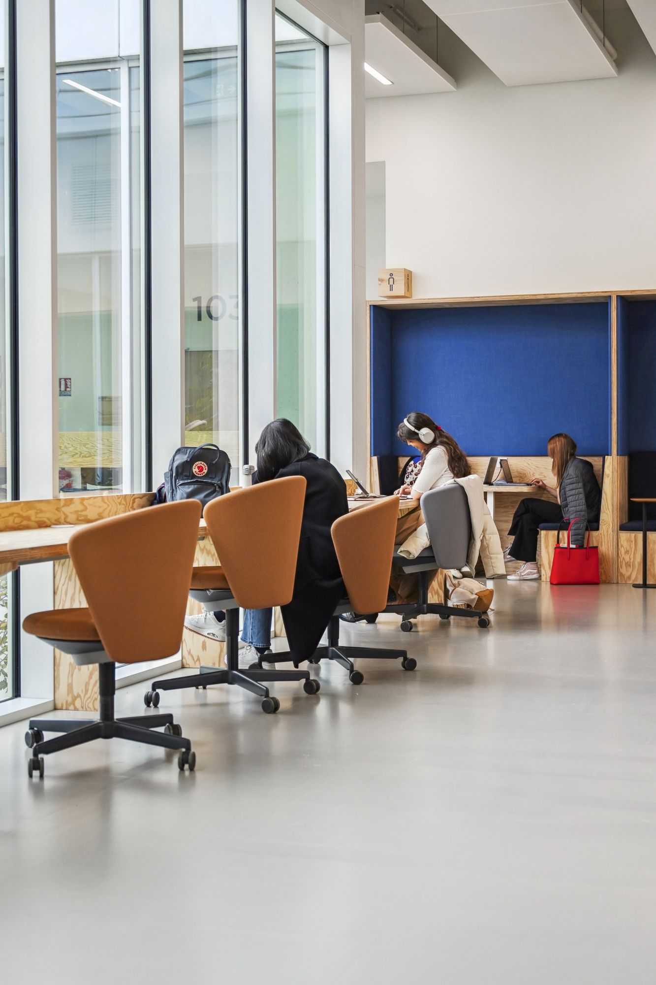 Les circulations ne sont pas de simples lieux de passage mais deviennent des espaces de co-working, d’affichage ou de pause. Le futur campus regorgera d’espaces de rencontres et de collaboration.
