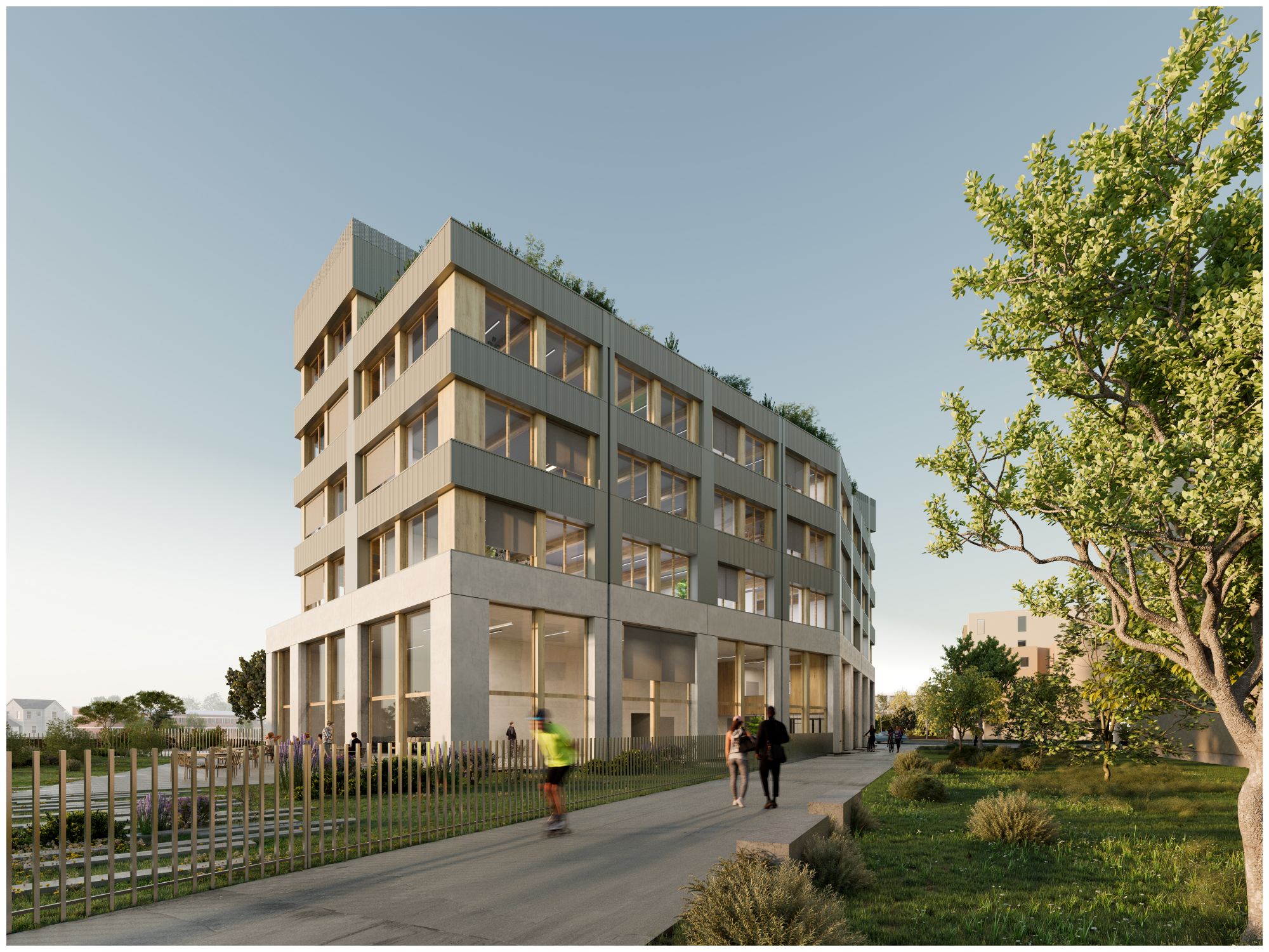 Le bâtiment vise une performance environnementale élevée, avec une double certification BEE Tertiaire Neuf et Bâtiment Biosourcé niveau 3.