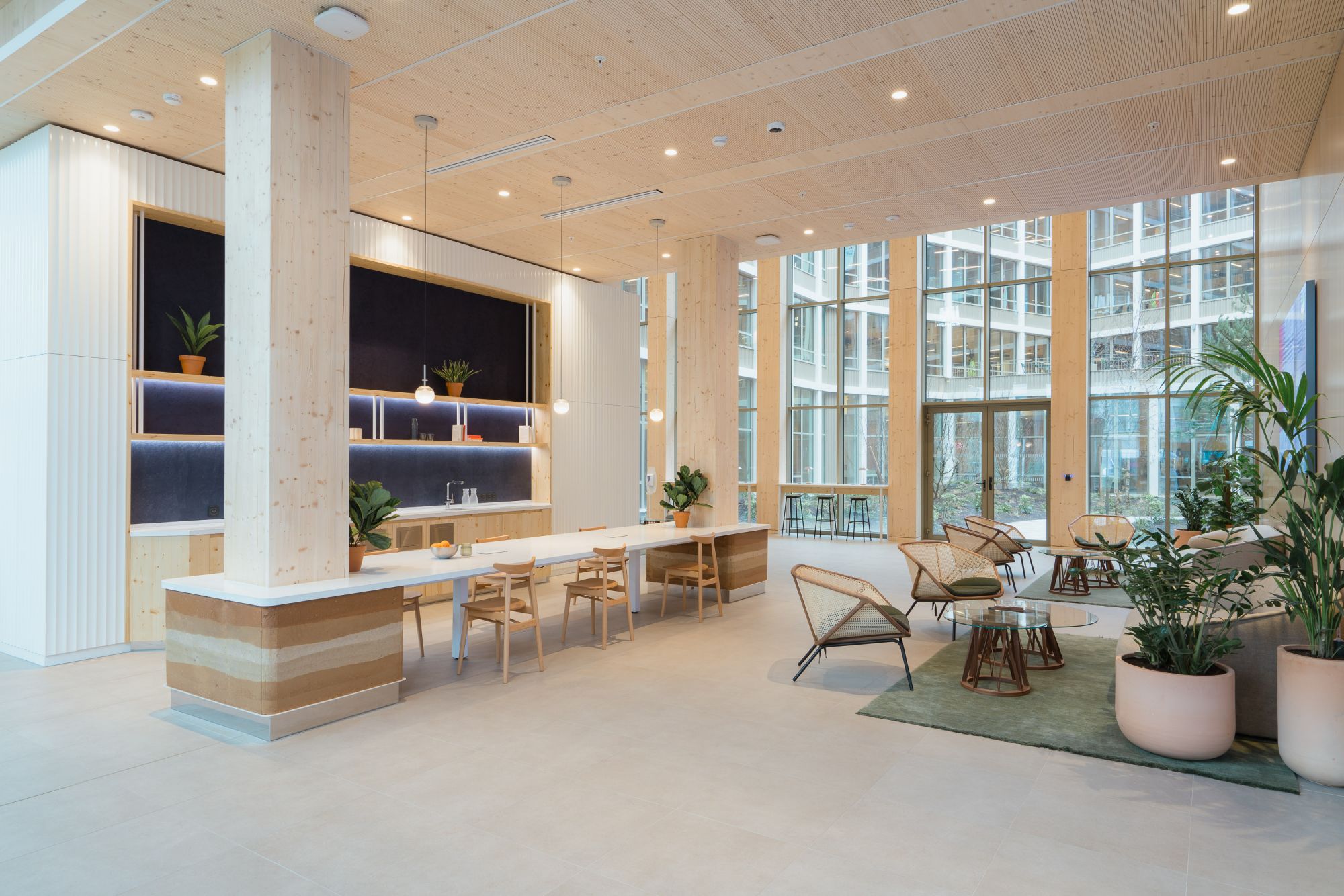 Le projet comprend des bureaux partagés, espaces de réunion, de collaboration, réception et de coworking, ainsi que des lieux de restauration (restaurant d'entreprise, cafétéria) et de fitness (ERP).
