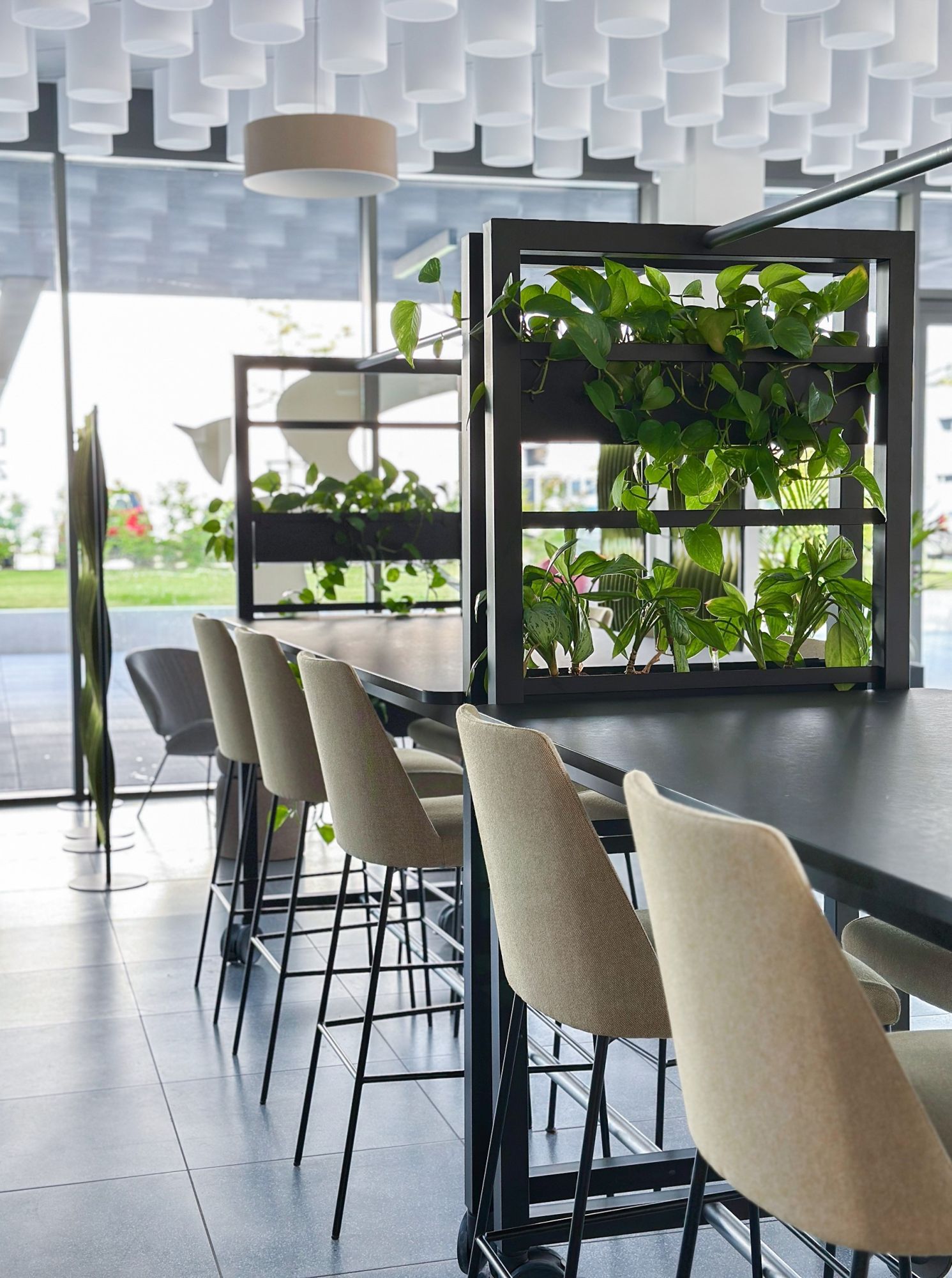 Le processus de planification a débuté en octobre 2022 et des ateliers de planification ont été organisés avec les représentants des employés de tous les départements, qui ont servi de base à la planification du mobilier. Un concept de design moderne et attrayant a été développé en consultation avec l'équipe marketing de Liftstar, en accord avec le concept de bureau. Les résultats ont été mis en œuvre dans un plan d'ameublement et le mobilier a été sélectionné dans le cadre d'une procédure d'appel d'offres.