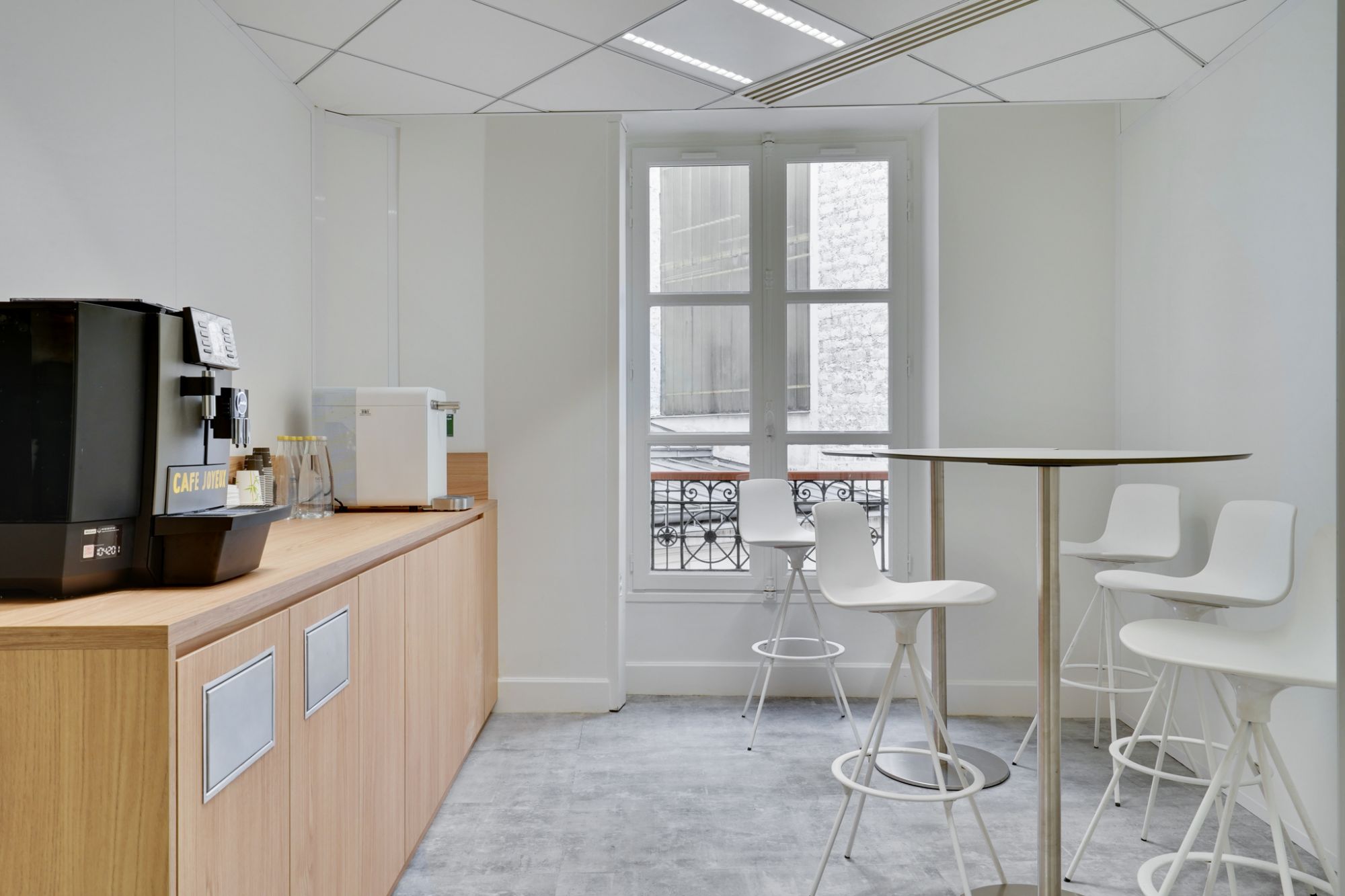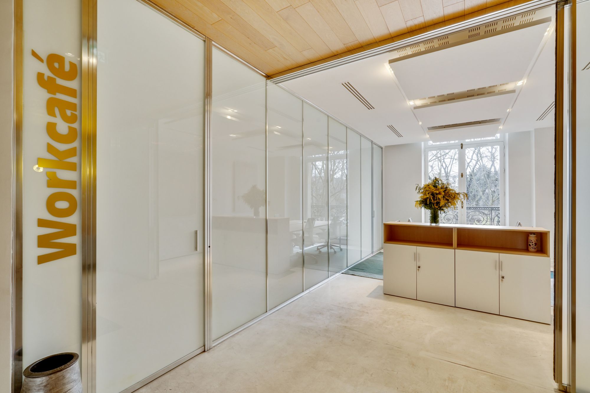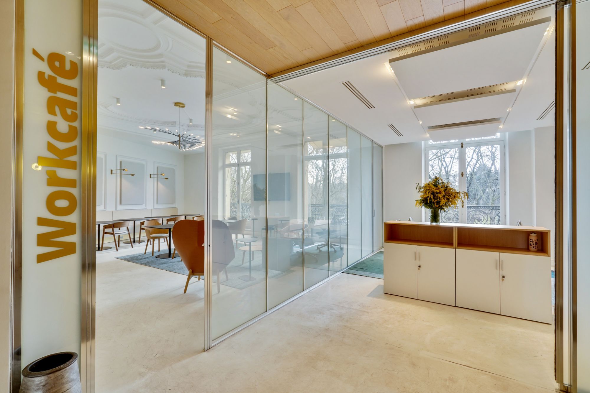 C'est pourquoi certains espaces sont modulables, en particulier le Workcafé, pièce maîtresse qui permet de multiples usages, allant de la détente à l'événement, en passant par la réunion, le tout étant optimisé par un vitrage Priva-Lite, un verre à occultation commandée.