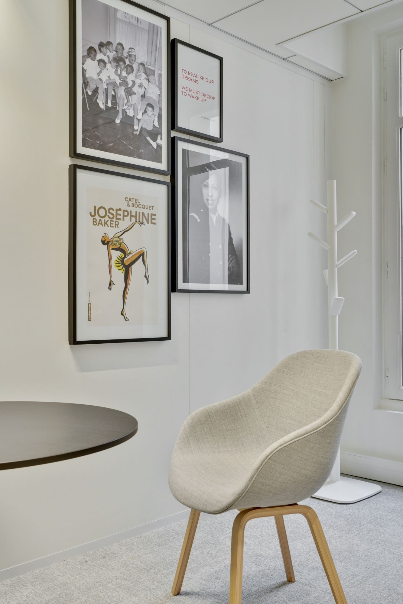 Les bureaux et ambiances ont été associés à des personnages inspirants, décidés collectivement par les collaborateurs de Nexmove. Ces choix ont été traduits dans la décoration murale via des tableaux, ainsi que dans la signalétique :